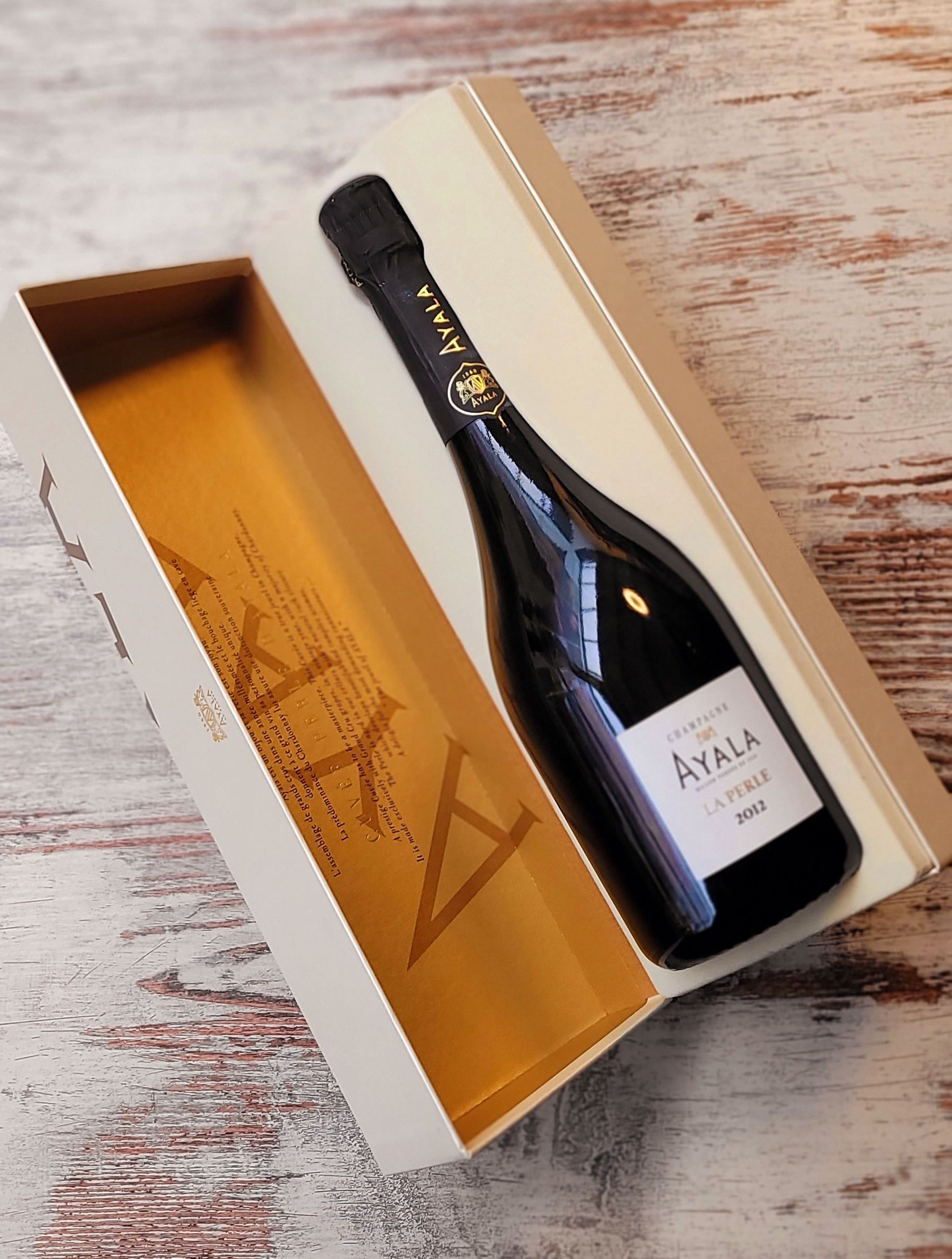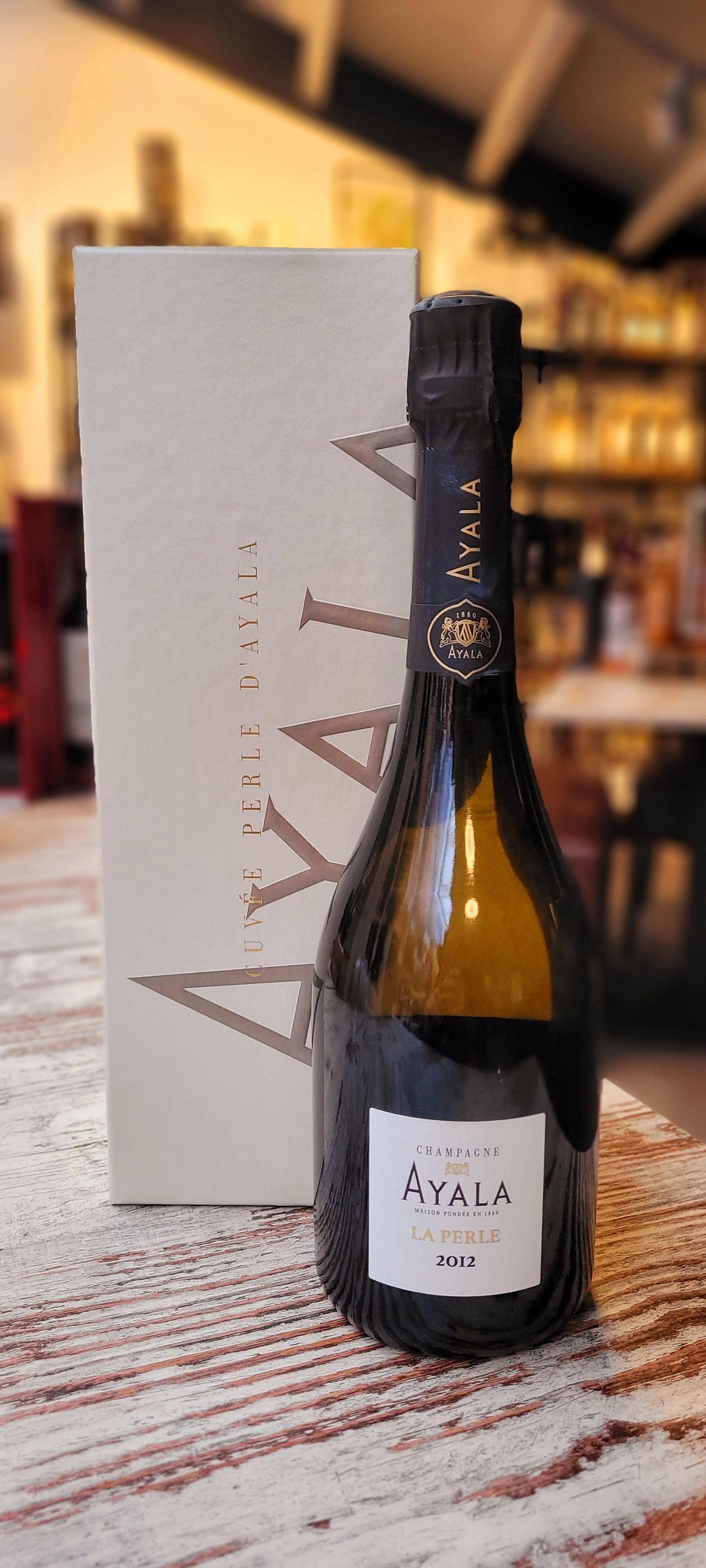 Ayala La Perle Brut Millésimé 2012 is een blend van 80% Chardonnay afkomstig uit Chouilly, Charmant, Le Mesnil-Sur-Oger en 20% Pinot Noir van Verzy. Dit zijn allemaal Grands Crus afkomstig van Côte des Blancs en Montagne de Reims. De verlengde rijping waarbij deze champagne minimaal 8 jaar op fles (en kurk) rijpt zorgt voor een complex aroma dat geliefd is bij de Champagne kenners.