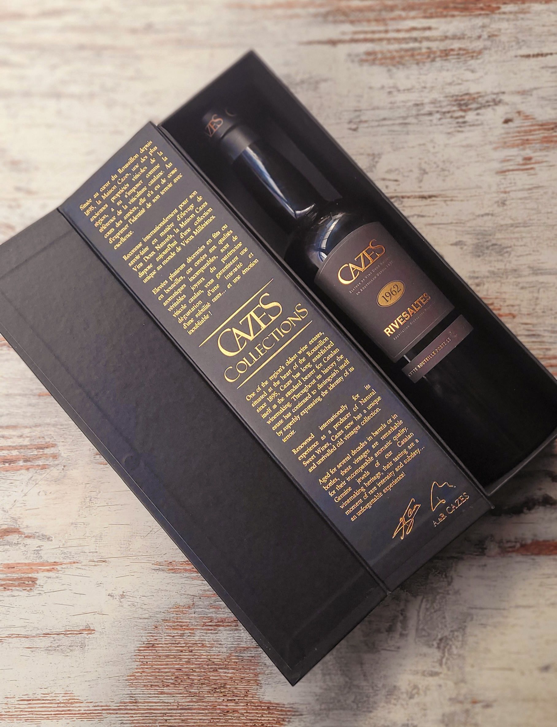 Cazes Collections Rivesaltes 1962-2012 Vin Doux Naturel. 50 jaar gerijpte desert wijn van de Grenache druif uit de Rivesaltes. Tonen van Grapefruit, cacao, kaneel, noten en citrus fruit. Perfecte balans en een enorme lengte. 700ml